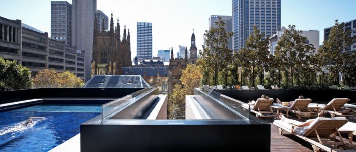There are commercial-size change rooms, showers, and locker facilities, plus an open-air jacuzzi with views out to Sydney’s most significant civic buildings, including the Town Hall and St Andrew’s Cathedral School.
